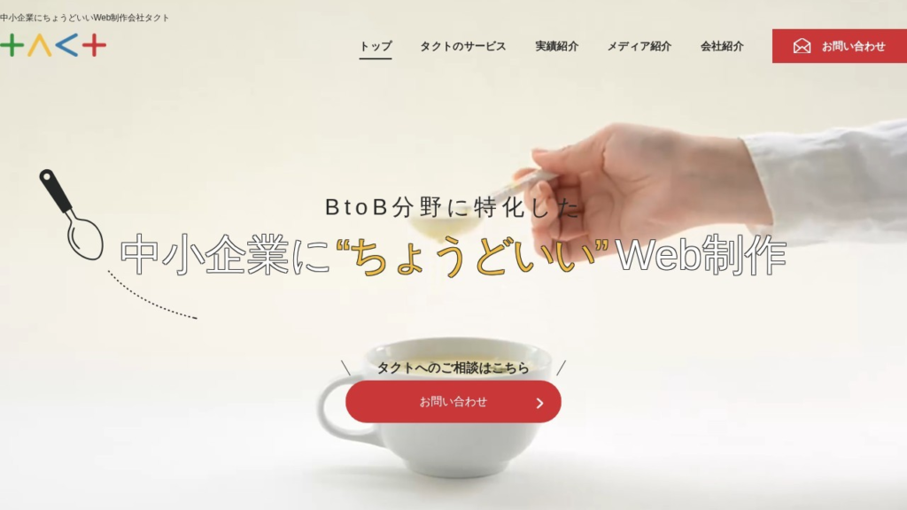 | 株式会社タクト | 集客・問い合わせを増やしたい中小企業向け | 要問い合わせ | 中小企業向けのWeb案件を多数手がけた実績がある(500社以上の記載あり) |