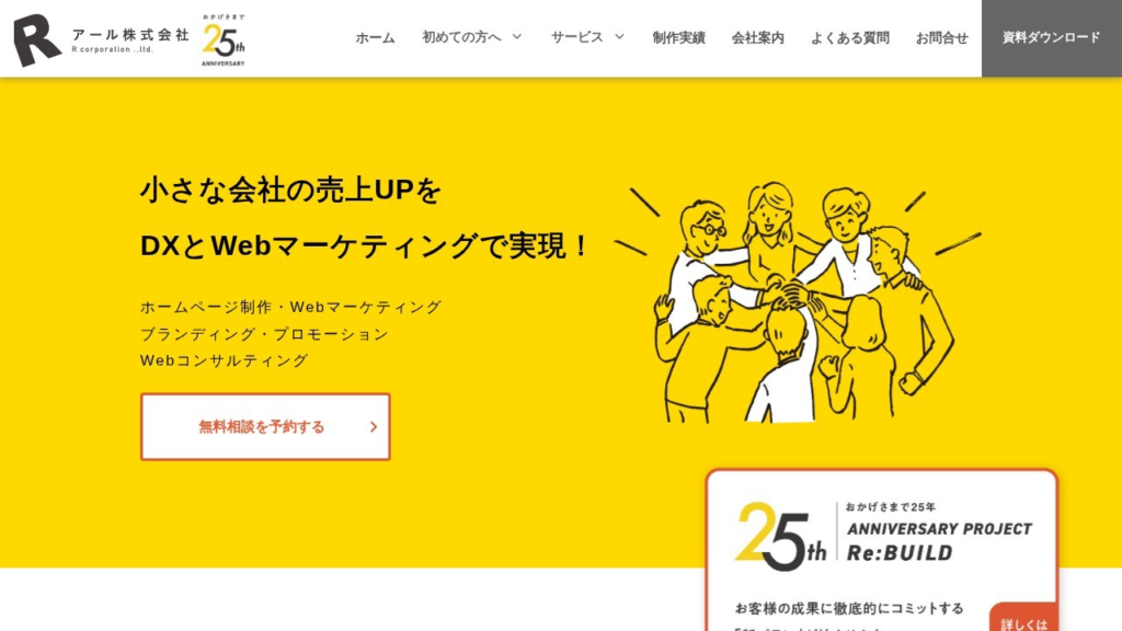 | アール株式会社 | 集客・問い合わせを増やしたい中小企業向け | 初期導入費:55万円(税込)/月額:19,800円(税込・PLUGプラン) | 初心者向けパッケージ「PLUG」で、制作+保守+ツール利用までまとめて開始できる |