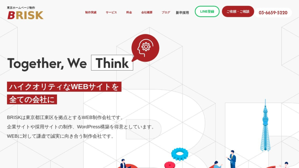 | 株式会社BRISK | デザインで信頼感を上げたい中小企業向け | 5P:30万円〜/8P:40万円〜/写真撮影:48万円〜(要問い合わせ) | 中小企業向けに、目的とターゲットに沿ったサイト設計から制作まで対応 |