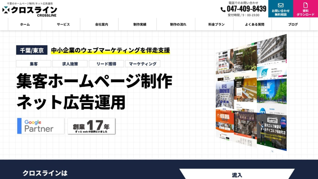 | 株式会社クロスライン | 集客・問い合わせを増やしたい中小企業向け | 店舗/メディア:20〜50万円/集客サイト:40〜120万円(要問い合わせ) | ホームページ制作に加え、SEO・SNS・広告運用まで一貫して相談できる |
