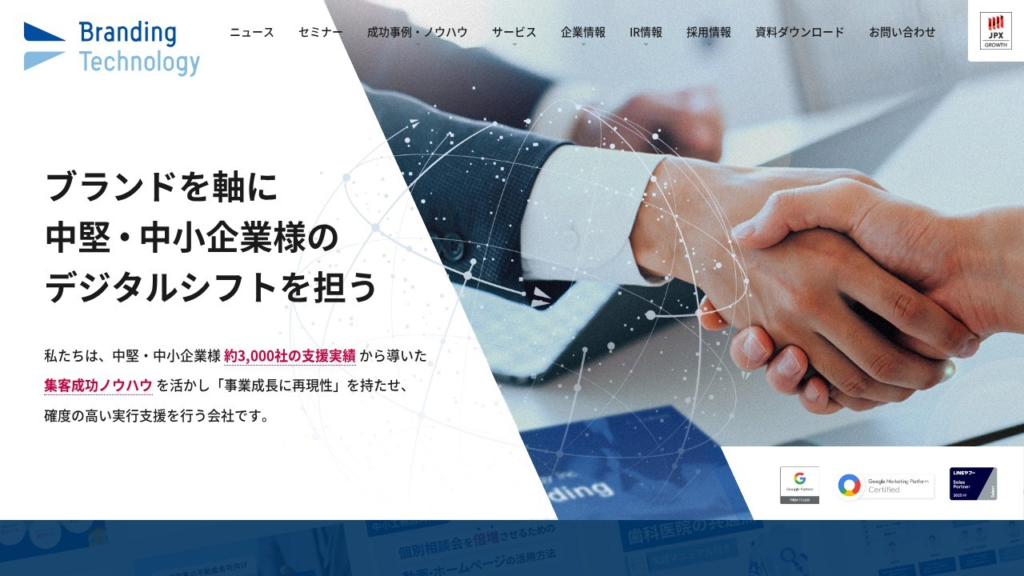 | ブランディングテクノロジー株式会社 | ブランディング・採用も強化したい中小企業向け | エントリープラン:初期3万円〜/月額5万円〜(他プランあり) | 中小企業支援実績が多く、ブランド構築〜運用まで段階的なプランがある |
