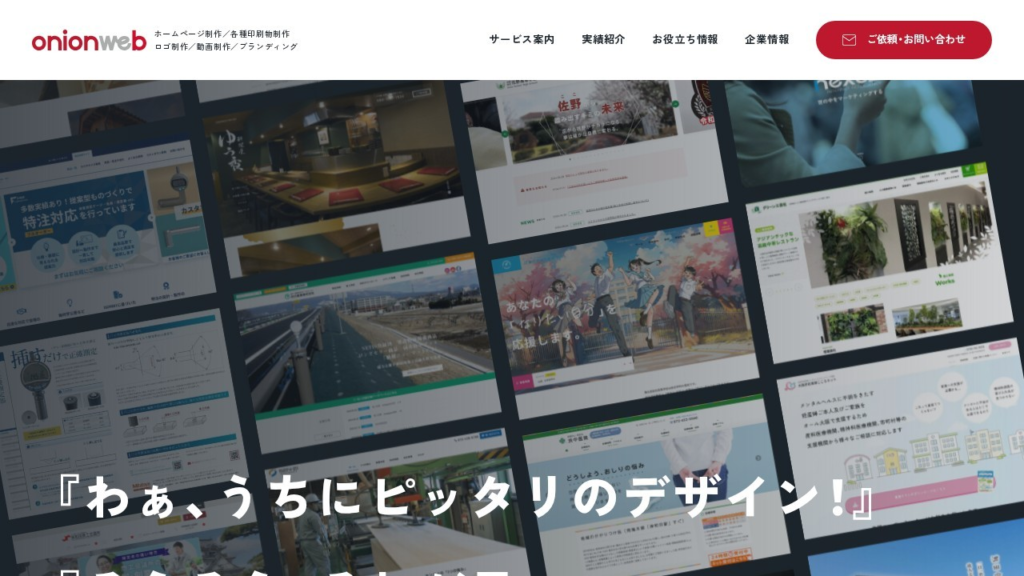 | 株式会社オニオンウェブ | デザインで信頼感を上げたい中小企業向け | 小規模:70万円〜/中規模:100万円〜/大規模:150万円〜 | 集客につながる導線設計と、ブランディングを両立したサイト制作 |