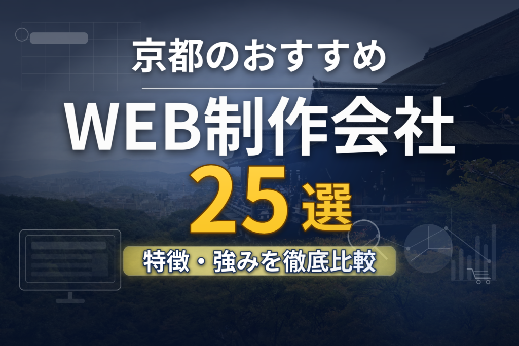 この記事では、京都のホームページ制作会社25社を5つの目的別カテゴリに分類しました。「戦略設計」「デザイン」「SEO・集客」「地域密着」「格安・コスパ」の切り口で、各社の強み・費用感・実績を比較しています。自社に合った制作会社を見つける判断材料としてご活用ください。