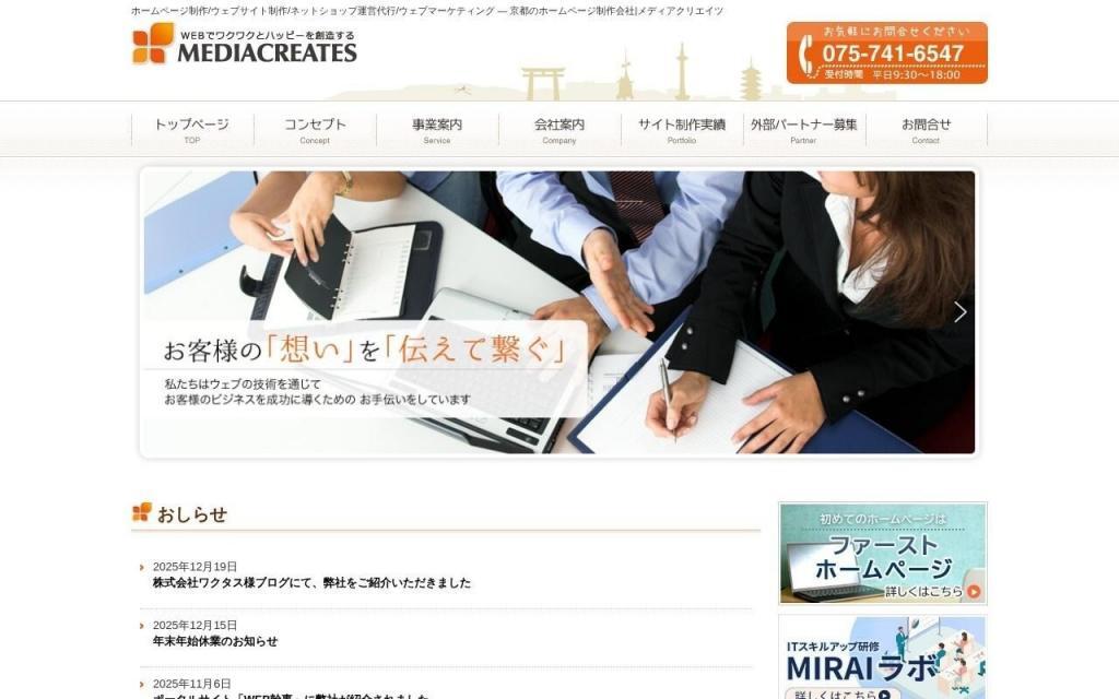 成果にこだわったクリエイティブとWebマーケティングをワンストップで提供する京都のクリエイティブカンパニー。企画・取材・撮影・デザイン・コーディング・分析まで社内で一貫対応している。