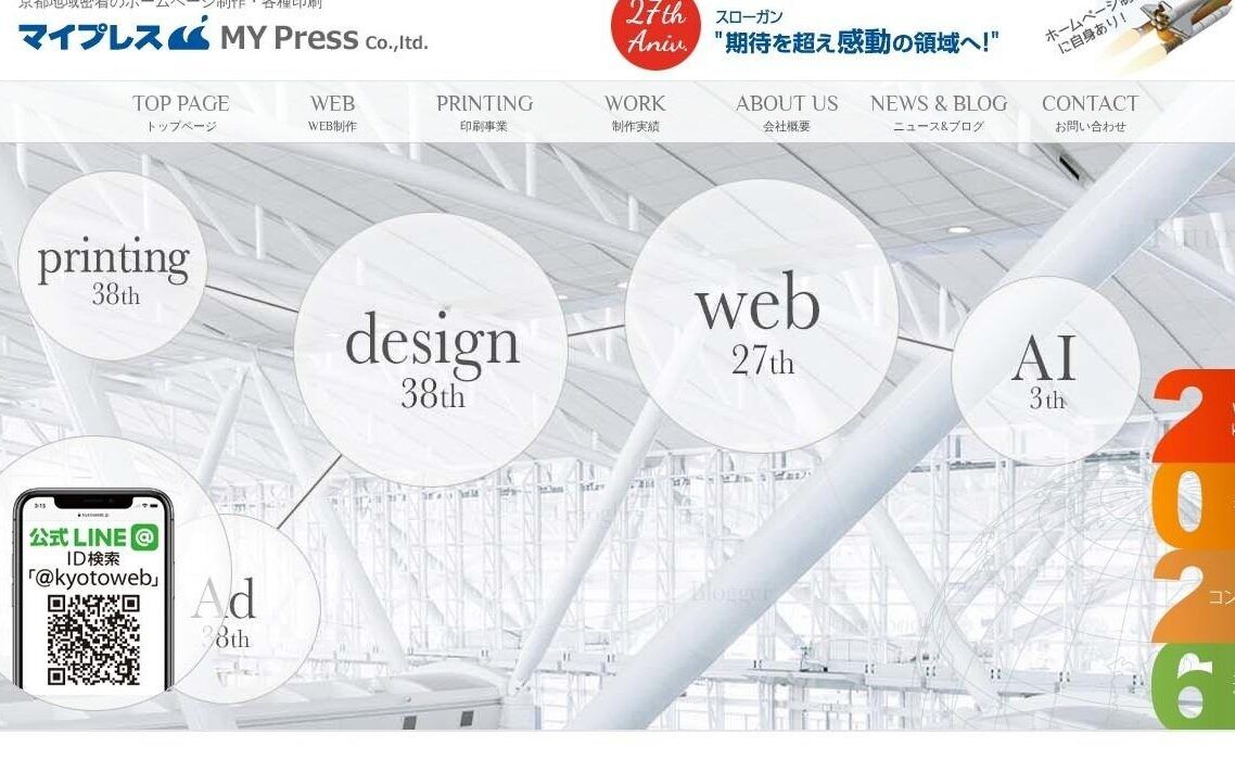 1995年創業、京都を拠点に30年以上の実績を持つ老舗Web制作会社。官公庁・大学・病院・上場企業など累計1,200社以上との取引があり、年間200件以上のプロジェクトを手がけている。